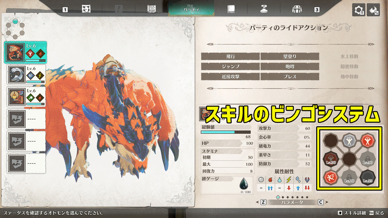 あとはオトモンの育成です。シリーズ本編では討伐対象となるモンスターですが、ストーリーズでは仲間として育てて戦わせます。