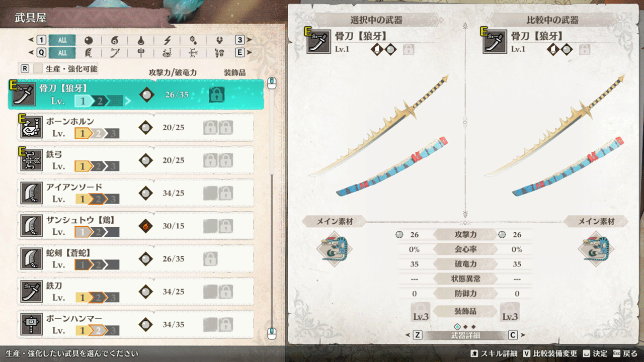 強いか弱いかはまだ何とも言えないです。1と2では大剣>片手剣>狩猟笛>その他という感じでしたが、どの辺りに入ってくるか。
