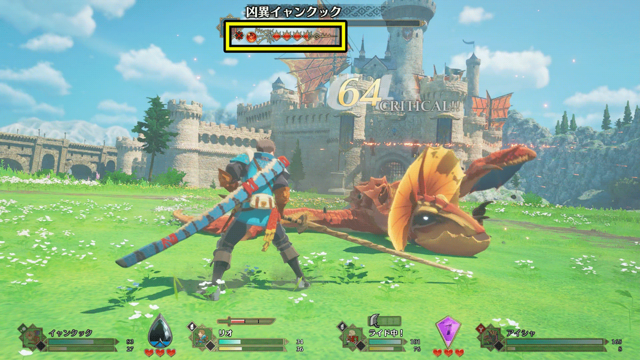 ダウン状態のモンスターは行動できなくなりクリティカルが確定します。