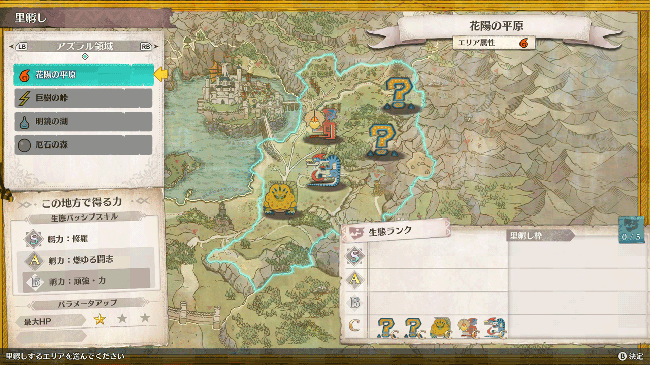 里孵しを繰り返すことでそのエリアの生態ランクが上昇し、より高ランクのモンスターの卵が見つかったり、特殊な条件を満たすことで突然変異したモンスターが見つかるようになります。