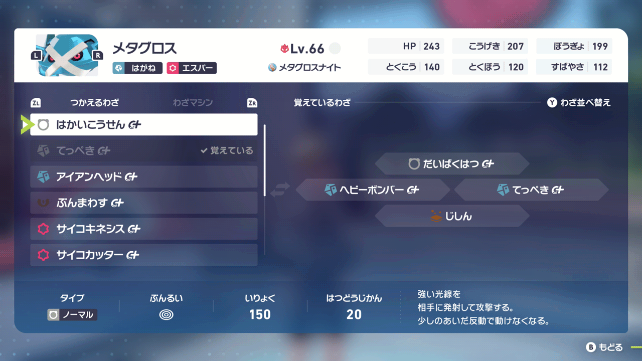 | 1 | メタグロス | ◯ | 54000 | だいばくはつ | 250 | 216 |