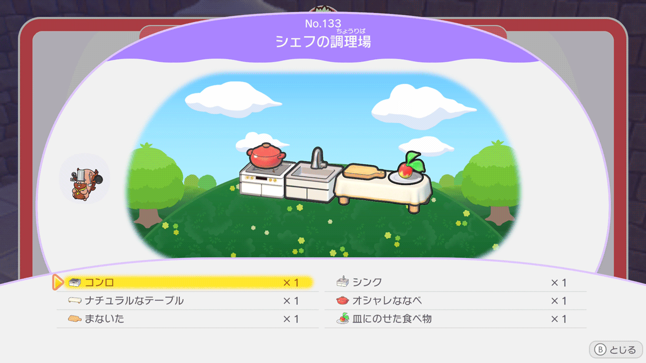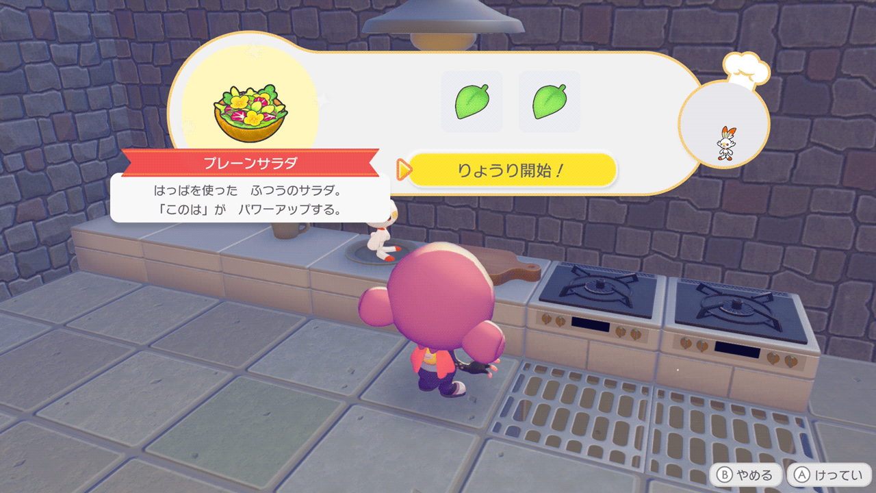 料理は調理器具と特定の素材を使用して作れます。ストーリーではゴツゴツやまの街のシェフバリスの頼み事を聞くとチュートリアルで教えてくれます。