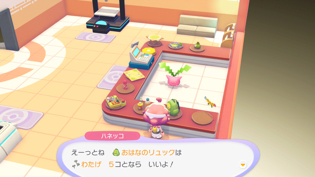 集めたわたげはポケモンセンターにいるワタッコが限定アイテムと交換してくれます。