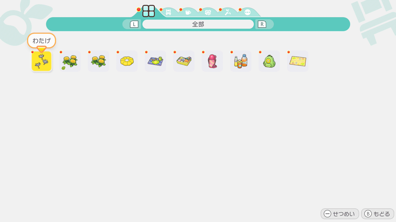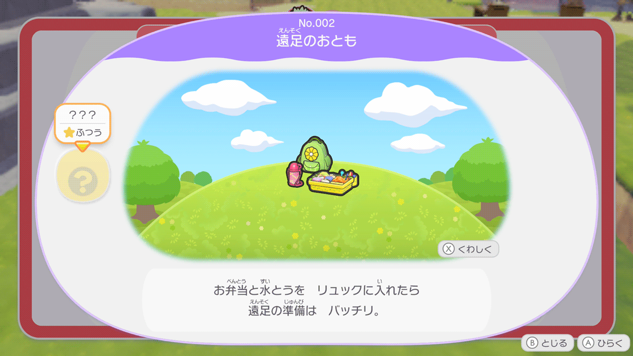 - 遠足のおとも:おはなのリュック、ハネッコすいとう、おべんとう