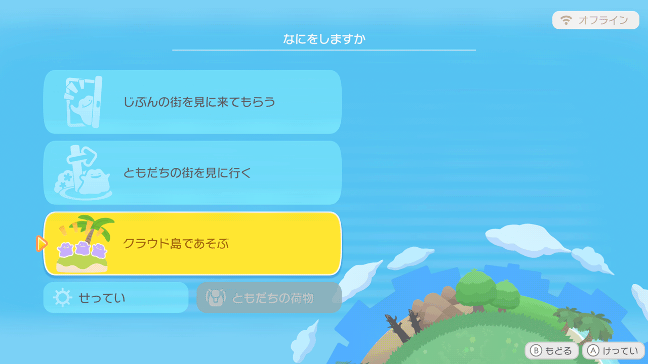 次に「じぶんの街に見に来てもらう」、「ともだちの街を見に行く」、「クラウド島で遊ぶ」というのがあるので目的のものを選びます。