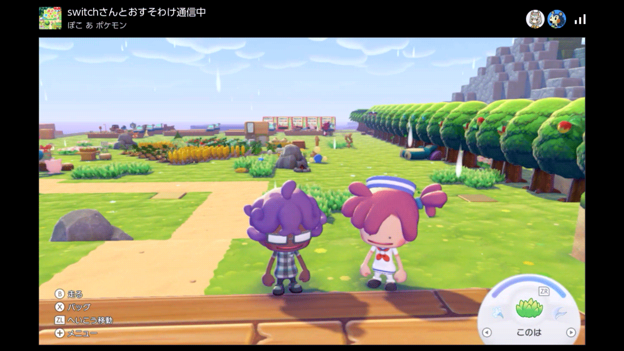 ポケモンを連れ歩きしてる状態で通信プレイするとそのポケモンを連れて行くことができる。おでかけ先でバイバイして分かれても帰宅時に戻って来るので安心。