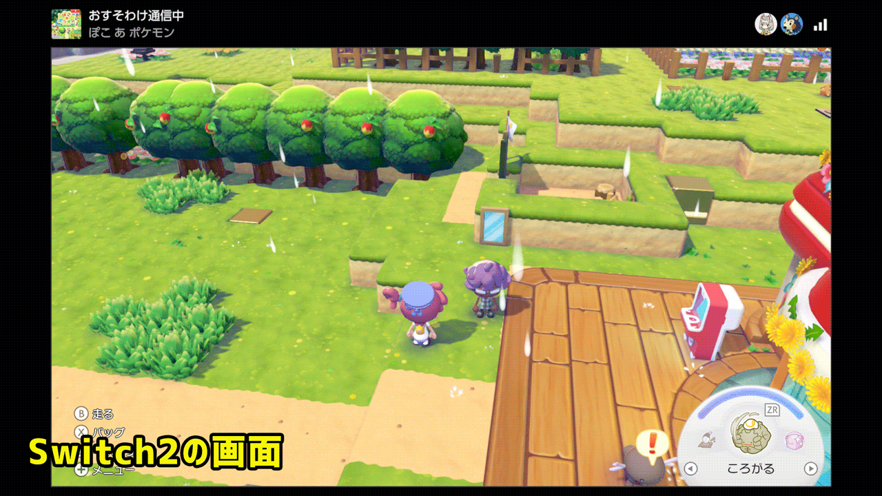 おすそわけ通信中はSwitch2の画面も周囲に黒帯が付いた状態になります。