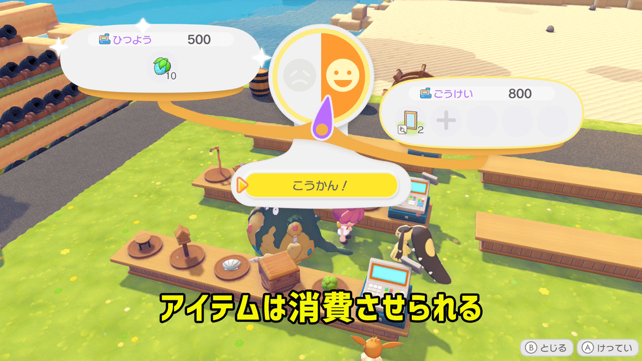 例えば食べ物を食べたり、素材を加工したり、取引で売却したりと。