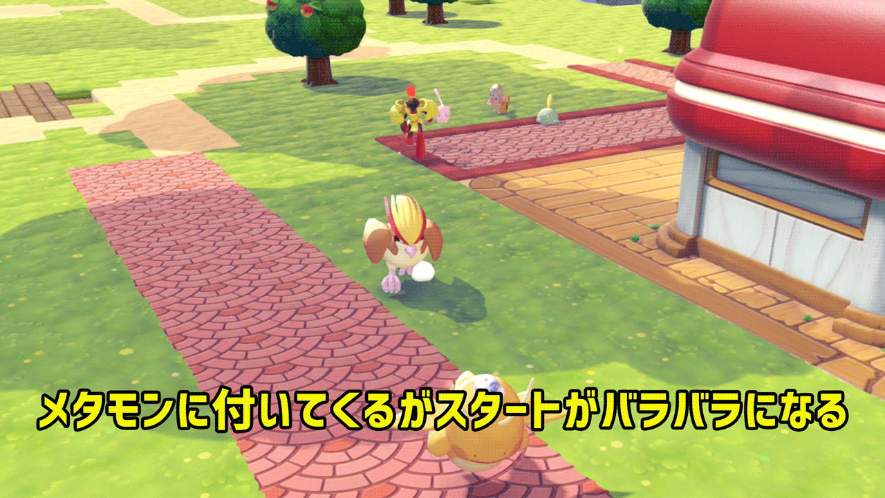 - メタモンと離れすぎると止まる、近すぎても止まる