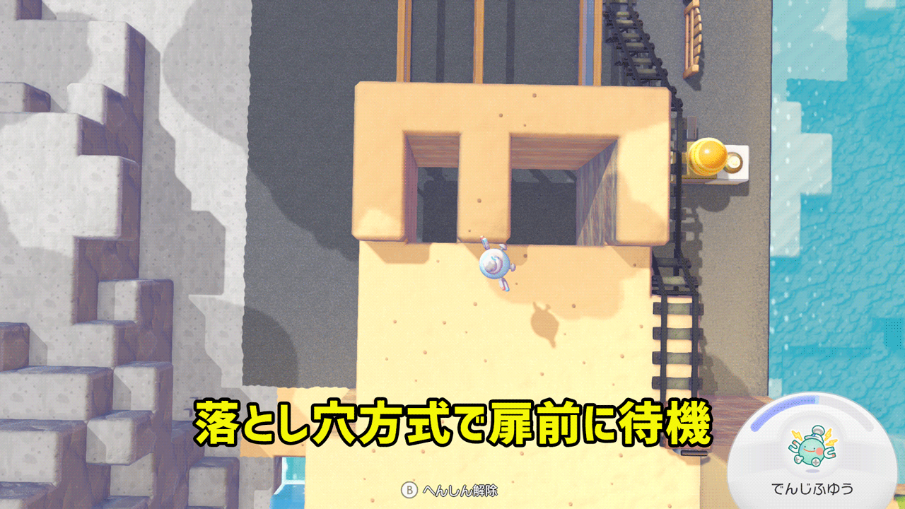体の大きなポケモンは1マスの穴だと落ちてくれないので、2マスの穴も用意しました。