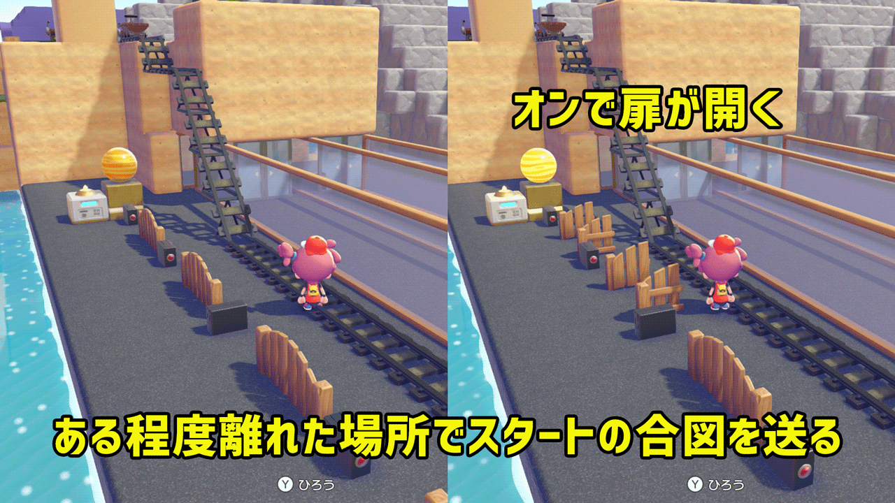 まずスタート地点は「じどうドア」を「きりかえむせんそうでんき」で制御しています。