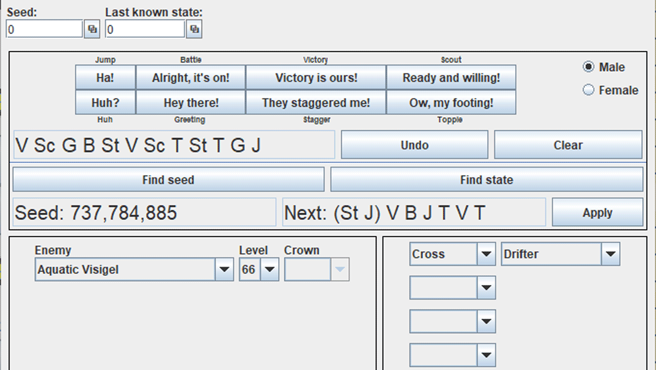 十分な数を入力できたらFind stateを押して位置を特定、位置が見つからなかった場合は入力を間違えているのでClearで全て消して、もう一度Yボタンで再生しながら入力していきます。
