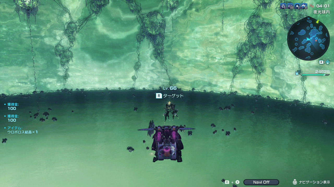 今回は夜光球に入ってナルキー1匹だけを残して他は倒します。