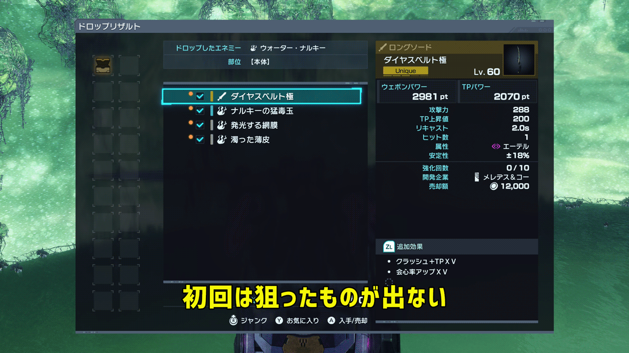 - ナルキーを倒してドロップゲット
